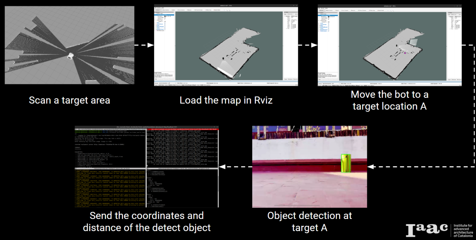 We wanted to go one step further and place the new detected object upon the map, however we were constrained by time and developing that process. We started developing a node that would publish it on the map when the contour is detected and estimating the width, height and distance from the Turtle_bot’s camera and Turtle_bot coordinate.