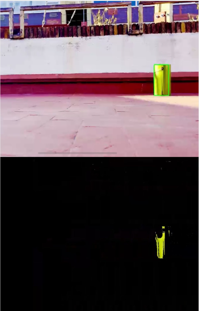 The second method we tested was controlling colour channels and filtering for a specific colour was the other method. With this we could control the colour range, allowing certain amount of colour through on each Blue, Green and Red channel. In this instance we filtered for a Green/Lime colour. With this we could pick up contours. However this can be constrained by shadows, as it takes parts of the target out of the colour filter. This was more efficient in real time as per frame we only filtered what came through and reduced any holdup which negated any noticeable lag. This gave us a greater performance overall, and was more direct for the scope of our project.